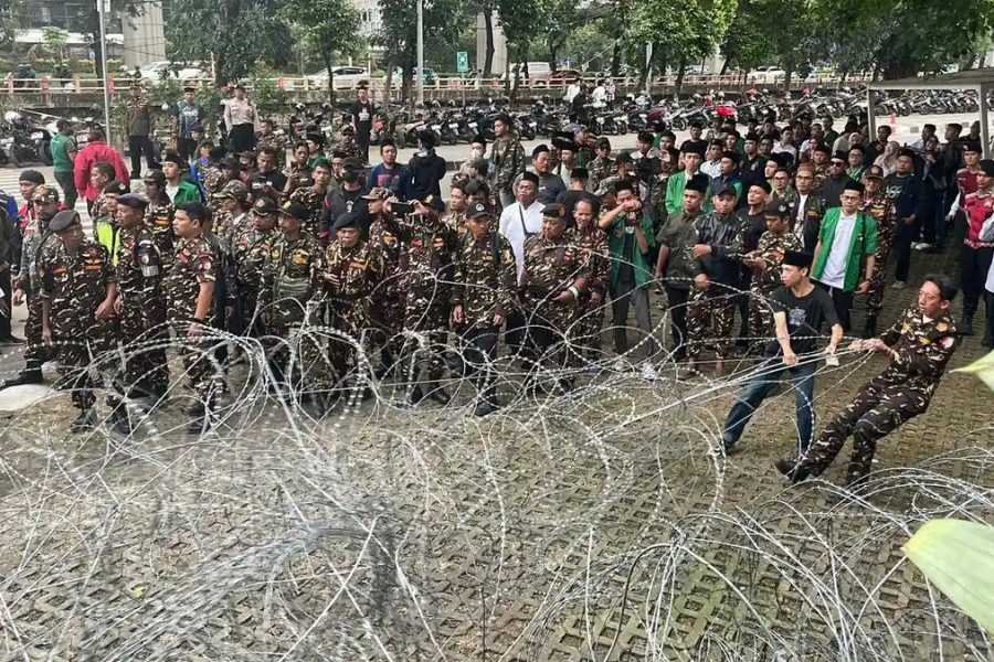 Yaqut Cholil Qoumas ditahan KPK terkait kasus korupsi kuota haji, memicu protes massa Banser di depan gedung KPK.